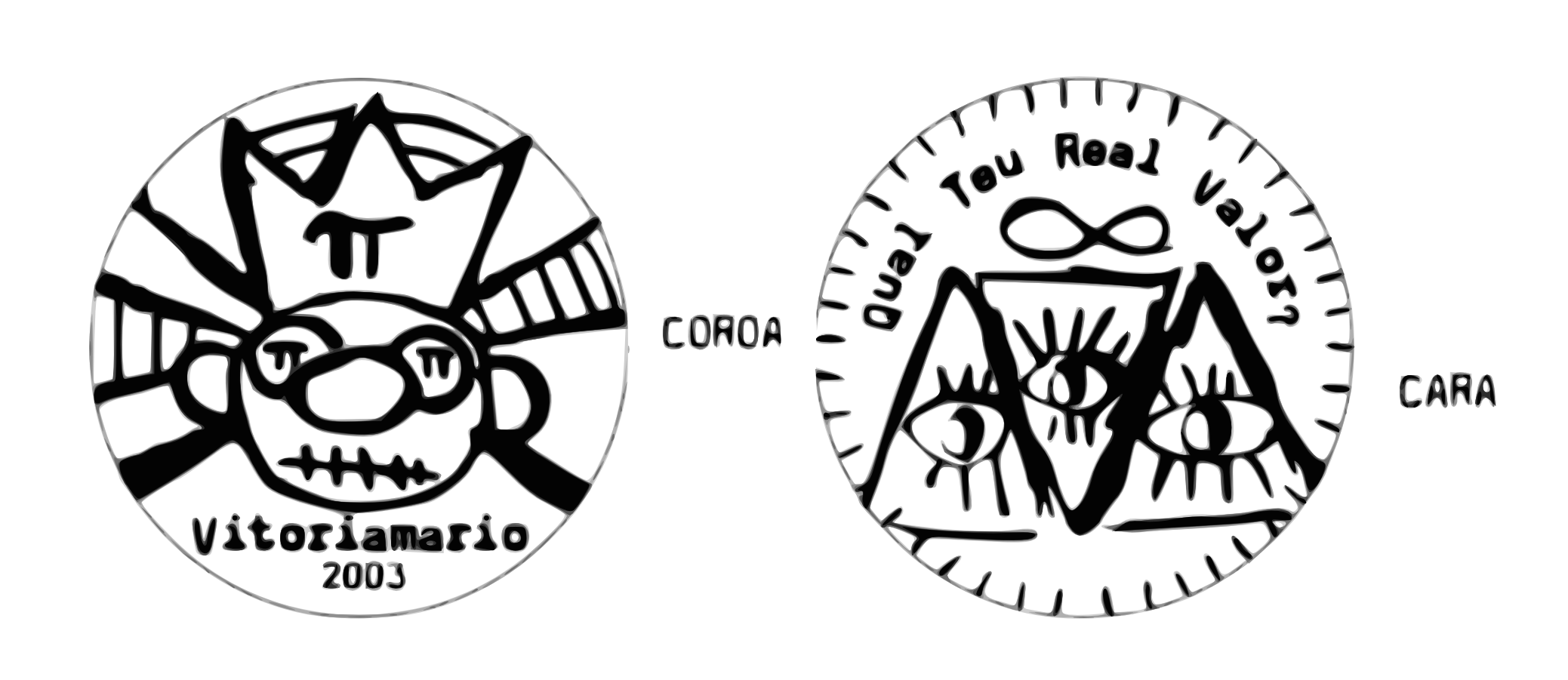 A máquina está montada ali. No meio da sala. Faz barulhos estranhos. Perdi um tempão descobrindo timbres e inventando batidas pra tocar junto com ela. 7 toca teclados. Eu toco guitarras. 7 tem um clarinete mas a gente só faz barulho nele. Enquanto isso a máquina cospe moedas de latão que a gente fica dando marteladas com uma marreta velha. Tem um esmeril que quando a gente apaga a luz solta faísca de tudo quanto é cor. Plasticamente é bonito e diferente. Conceitualmente… ah…conceitualmente vá tomar no cu…Qual teu real valor?? 7 pessoas compareceram à nossa estréia. O numero 7 fica lisonjeado. Eu decepcionado. 3 amigos e mais minha mãe, minha avó e o síndico do prédio que veio encher o saco achou engraçado e acabou ficando. Ah. São 6, né. Desculpe, 7 é que eu estava contando você. Número, números. Esta merda de números. Toda vez que a gente tem uma idéia genial devia cair automaticamente um doc de dois mil reais na conta corrente. Assim não tinha que me preocupar com essa história de popularidade. Eu simplesmente teria as idéias, executaria pra mim mesmo e pronto, Uau. Sou demais. Mas não, vocês têm que gostar se não eu vou ter que ir trabalhar. Gerente de marketing de uma fábrica de baldes. Webdesigner de um portal de equipamentos de natação, assesoria de imprensa de empresa de cosméticos. Salário no fim do mês. Simples. E medíocre. Prefiro minha cruz de ponta cabeça. Sigo a temporada por mais três semanas. Vendi meu computador pra comprar latão. To sem grana, mas tem sido divertido. As pessoas do circuito underground sabem que eu sou "o maluco da máquina de moedas". Eu sempre me divirto. Cada ritual da máquina pra mim é sagrado. Já deu 20 pessoas uma vez. Arte é assim mesmo… Nietzche já dizia que o artista só precisa de seu pão e do seu circo… nós livres, nascemos póstumos, Battaille já falava que a parte maldita da economia não nos cabe e… 7 me diz que vão cortar a luz. Puta que pariu. Sem luz não tem show. Fudeu. Porra…Como eu poderia imaginar que sou um funcionário da Eletrobrás antes de tudo?? Eu existo pra manter funcionando todas aquelas usinas, cheio de carinhas de capacetes que sustentam suas crianças que gastam muita luz punhetiando no chuveiro quente. Pra destruirem mais algum santuário ecológico que com certeza dá menos grana com turismo do que com a possibilidade de serem ligados mais e mais equipamentos eletrônicos. Televisão não vejo a um ano. Só sem querer, na casa dos outros. Todo mundo fala mal de televisão, mas vê. Não posso falar nada… antes de vender meu computador, eu ficava lendo blogs, é a mesma coisa que ver novela. Todo mundo escreve. Todo mundo toca violão. Todo mundo desenha. Quem é algo pra julgar o que é bom? A história? Do ponto de vista de quem? Dos acadêmicos e curadores protegidos atrás de sua teia totêmica de referências? O mercado? Suas imposições massificadas e pasteurizadas por sua industria, suas revistas de entretenimento e segundos cadernos de jornais cheios de críticos que cagam regras baseados na imprensa anglo-saxônica e seus cds, biografias, catálogos caros e importados com sua coleção de adjetivos e referências do momento? A virtude técnica? A escravidão altista e masturbatória presa num labirinto hermético de auto adoração, onde por um segundo de desatenção do público perdem-se detalhes de anos de treinamento e disciplina? Meus senhores. Eu cuspo. Cuspo no prato em que comi. A arte que se foda… Vou trabalhar. Me vender como todos eles. Ter dinheiro pra pagar minha língua. 7 quer me consolar. Faz uma piada. Diz que estamos cheios de dinheiro. Mostrando o chão cheio de moedas que cunhamos. Merda. Tive outra idéia.